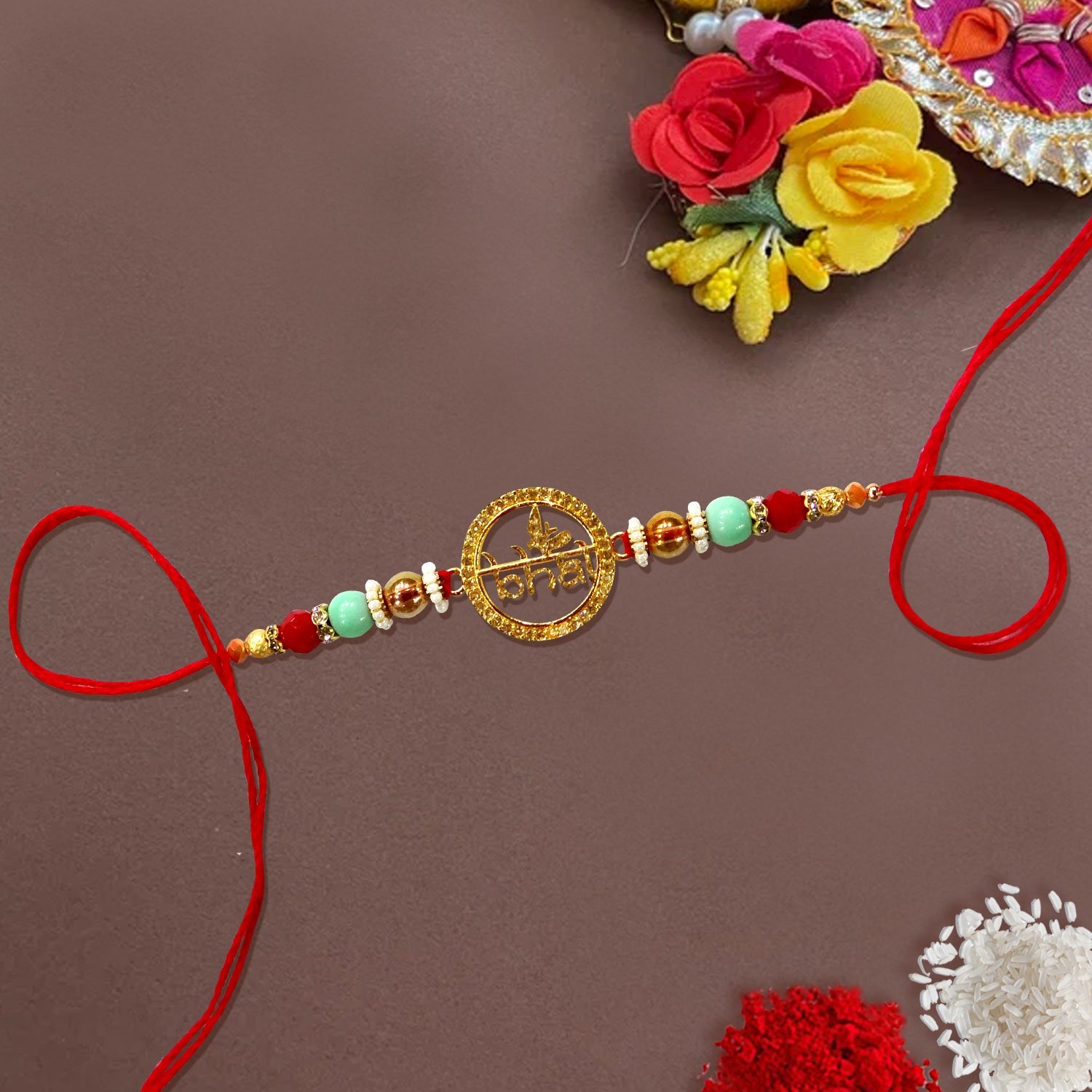 - This gold Rakhi for brother adds a touch of sparkle to Raksha Bandhan celebrations, elevating the festive spirit with its elegant charm.